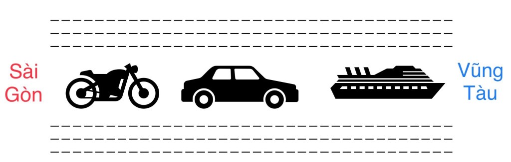 Sáng chủ nhật. Uống cafe ở góc phố. Bàn bên cạnh có bốn thanh niên trẻ đang say sưa bàn luận: từ Sài Gòn tới Thành phố biển Vũng Tàu đi bằng cách nào là hợp lý nhất?