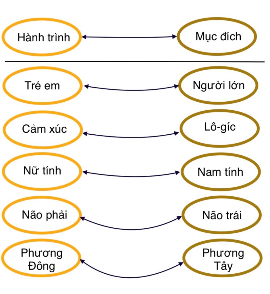 Tương phản giữa hai dạng có thể mô phỏng qua sơ đồ sau.