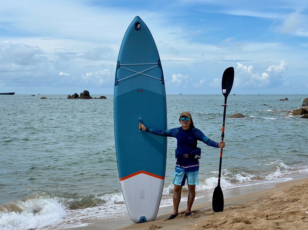 Đã gắn bó với chỗ này 5 năm, từ 2018, bằng công việc thả diều và lướt ván trên biển.