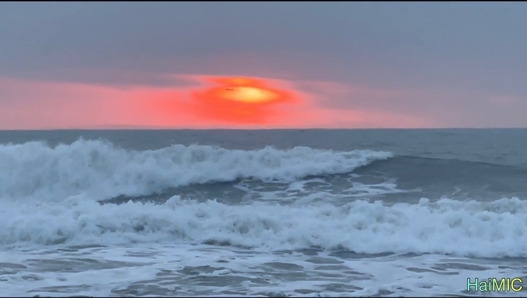 Dưới biển sóng mạnh. Ở trên mặt trời khó khăn tìm cách thoát khỏi đám mây.