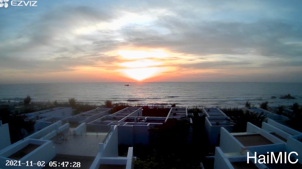 Có ngày ở nơi xa mà vẫn nhớ biển. Ngắm bình minh qua camera lắp trên mái nhà.