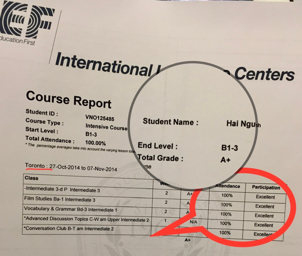 Qui trình cũng đơn giản. Trải qua việc kiểm tra online tiếng Anh, sau đó họ đánh giá trình độ và sắp xếp lớp. Khóa học khá thoải mái: từ 2 tuần tới 2 năm, tùy mình chọn thời gian và địa điểm.