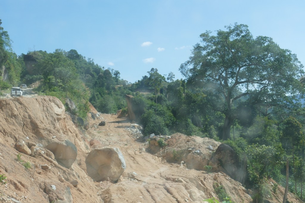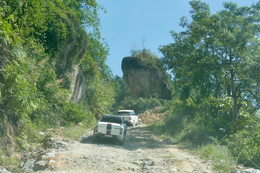 Tảng đá lớn mới lộ thiên, không nghĩ nó nằm đây được lâu dài. Theo thời gian, mưa to sẽ làm nó dịch chuyển sang chỗ khác. Nếu bên trái – sẽ sửa đường hiện nay; sang bên phải – sẽ sửa đường ở phía dưới.