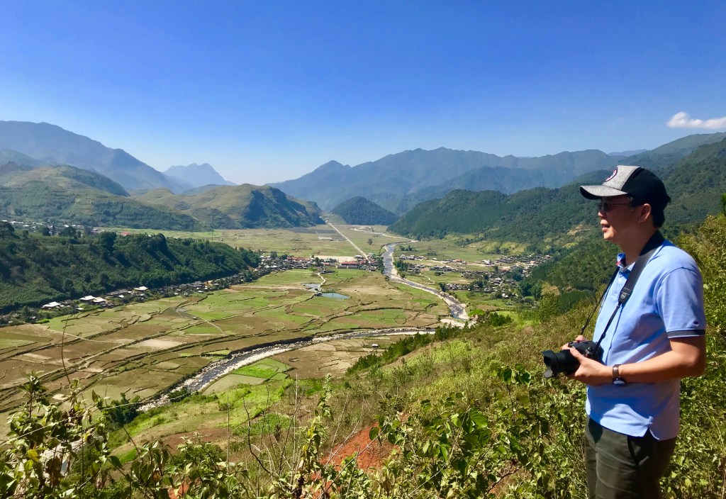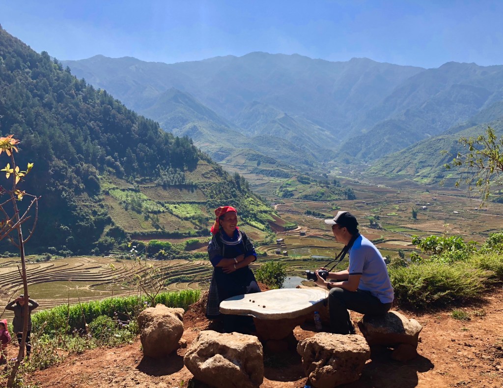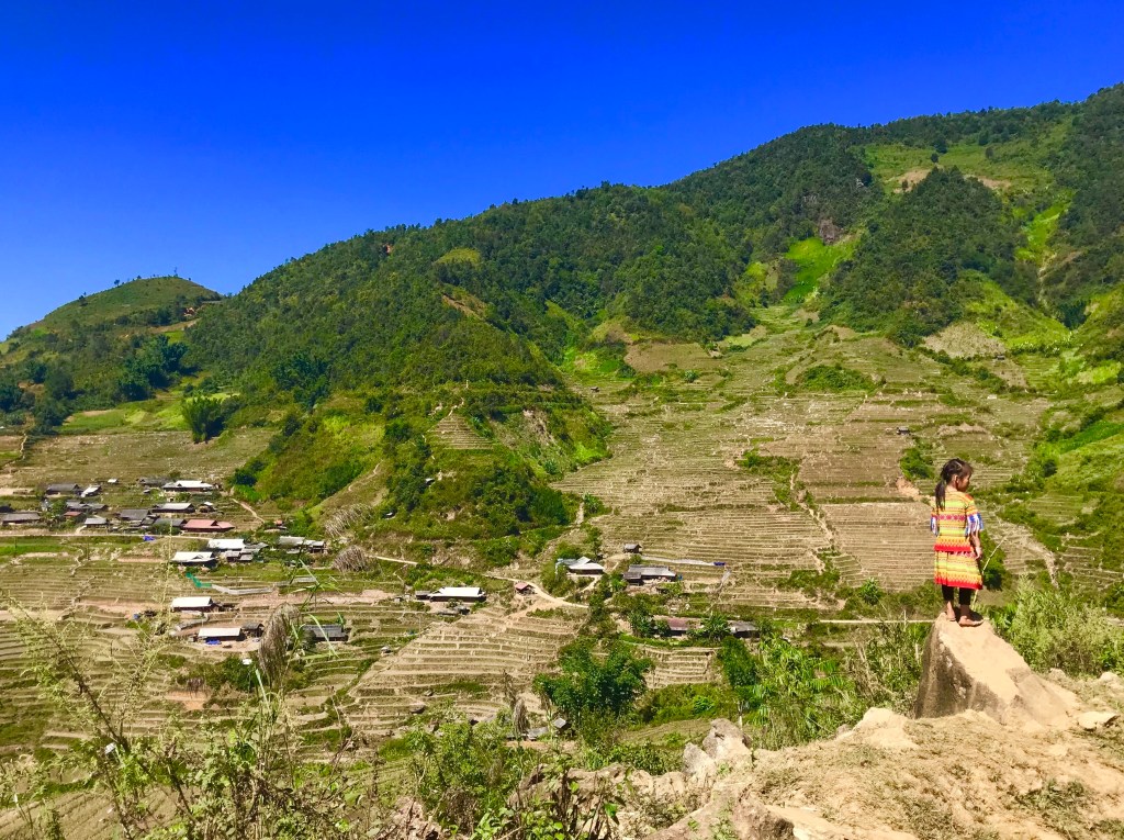 Khảo sát vị trí xây thêm lớp học mới. Chỗ này nhìn thấy ruộng bậc thang, mùa lúa chắc đẹp lắm.