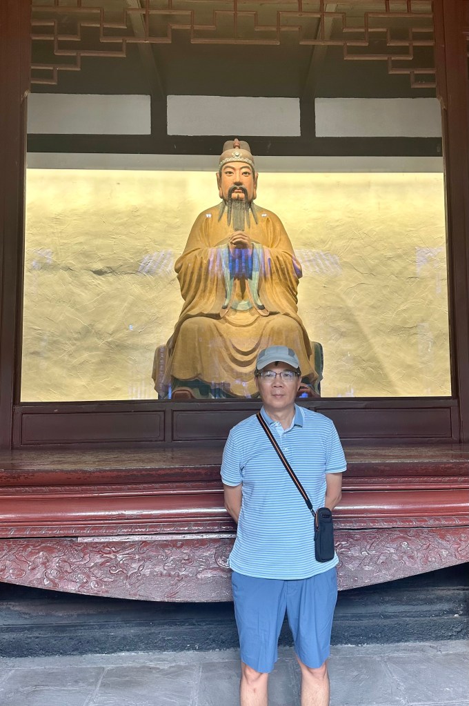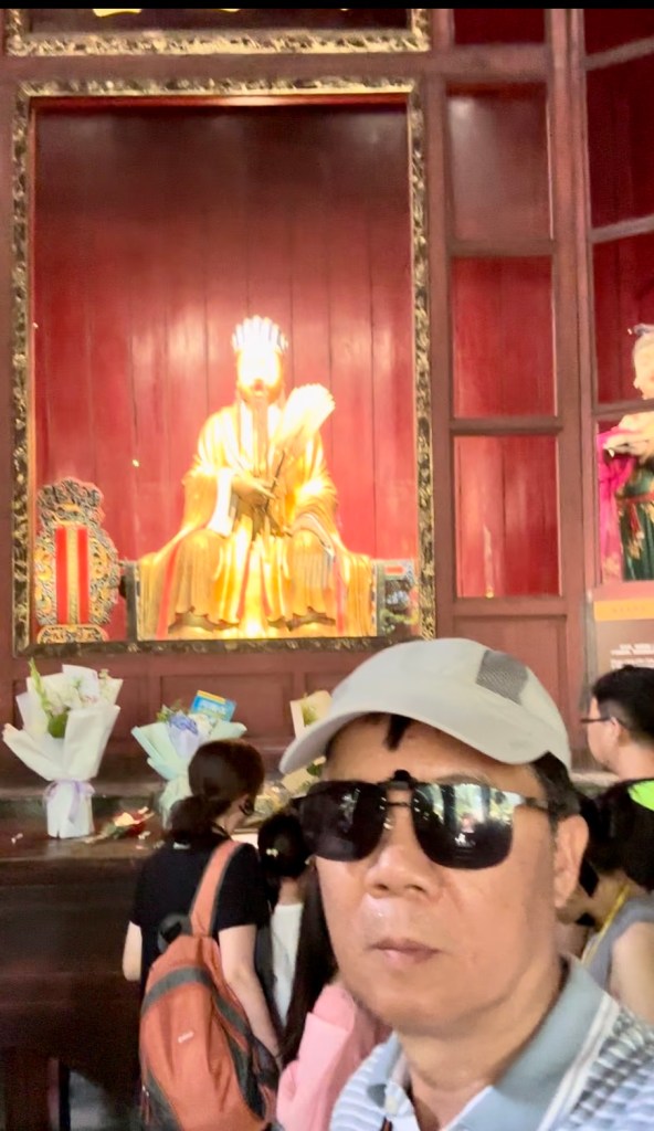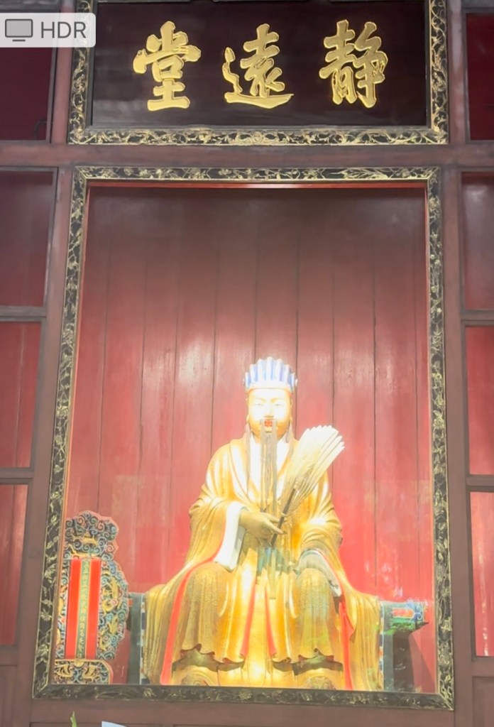 Còn đây là tượng ông Gia Cát Lượng – quân sư của Lưu Bị. Nhân vật này được trẻ con Trung Quốc học từ thời phổ thông, nổi tiếng là hiểu biết rộng rãi. Mưu cao. Chí lớn.