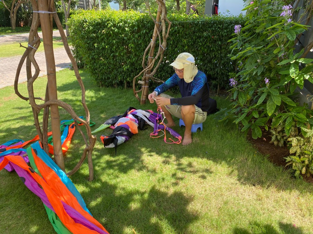 Thu diều về. Khi gió mạnh trên 30 km/h thì kéo về rất khó. Cần công cụ chuyên dụng. Và thời gian thu mỗi con cũng cần 5-10-20’, tùy hoàn cảnh. Nên một mình phải lo hết số diều trên khá vất cả.