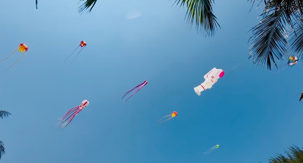 Lên cao – những con diều dù dài hơn 20m, nhưng trông cũng thành nhỏ xíu.